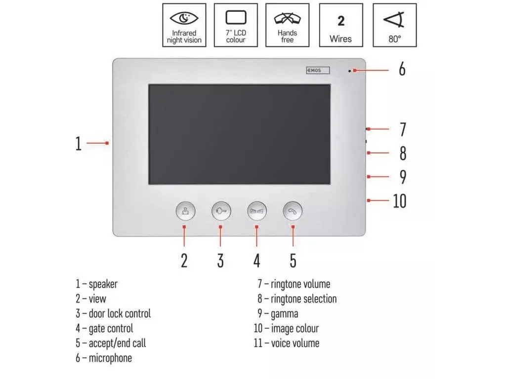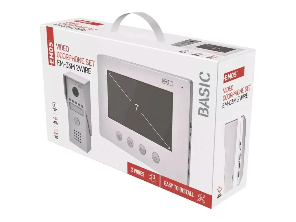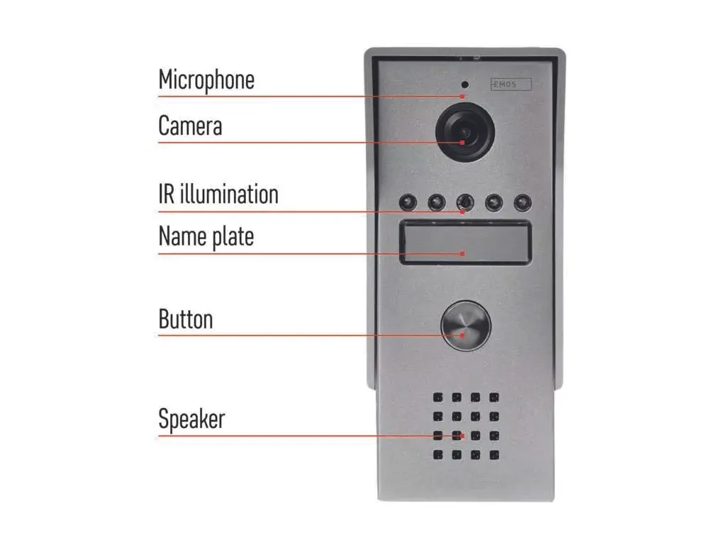 Videotelefón EMOS EM-03M vás poteší jednoduchou montážou pomocou 2 vodičov, jednoduchým intuitívnym ovládaním a premyslenými detailmi, ku ktorým patrí napríklad štítok na menovku.