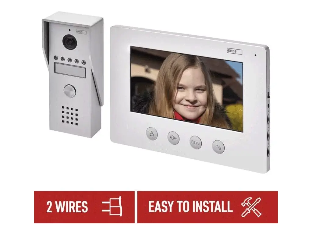 Videotelefón EMOS EM-03M vám zjednoduší život v mnohých ohľadoch. Nielen že vás upozorní na prichádzajúcu návštevu, stlačením jediného tlačidla na vnútornom LCD monitore ale navyše jednoducho na diaľku odomkne vstupné dvere alebo otvorí bránu.