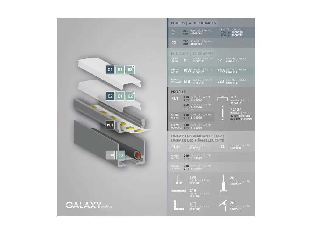 LED profily od GALAXY® profiles rozptyľujú teplo, predlžujú životnosť LED pásov a ochranujú LED pásy od špiny a mechanického poškodenia.